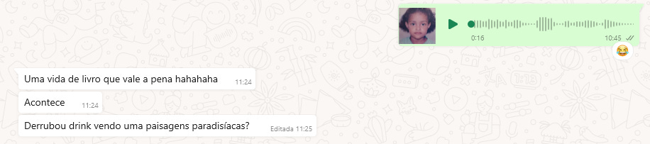 Sei lá o que aconteceu enquanto eu descia drink depois de drink. Sei que no barco, no percurso de volta à cidade, percebi que a bolsa estava um pouco molhada. Cheguei no hotel e o livro da amiga, agora dentro de bolsa, estava ensopado. Achei que a situação da capa poderia melhorar depois de seca, mas não melhorou muito naum. Mandei um áudio cheio de culpa e com a promessa de comprar um novo exemplar.
